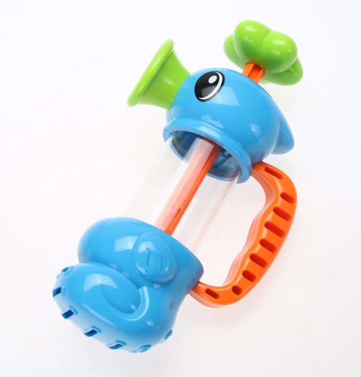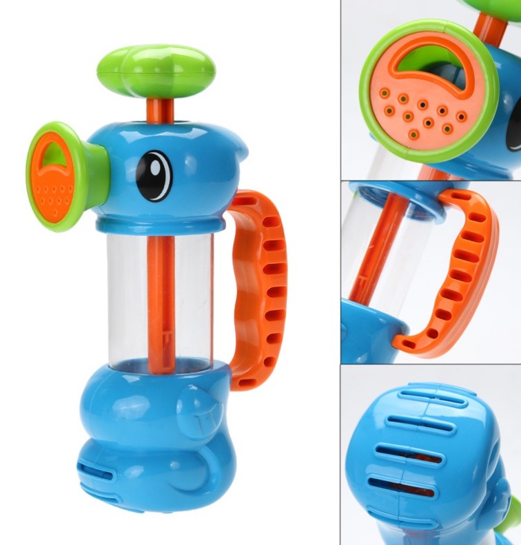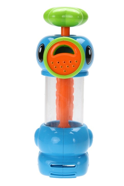 Grazie al pistone, i bambini aspirano acqua attraverso le aperture inferiori e, premendo il pistone, l'acqua spruzza dalle aperture nel becco.
