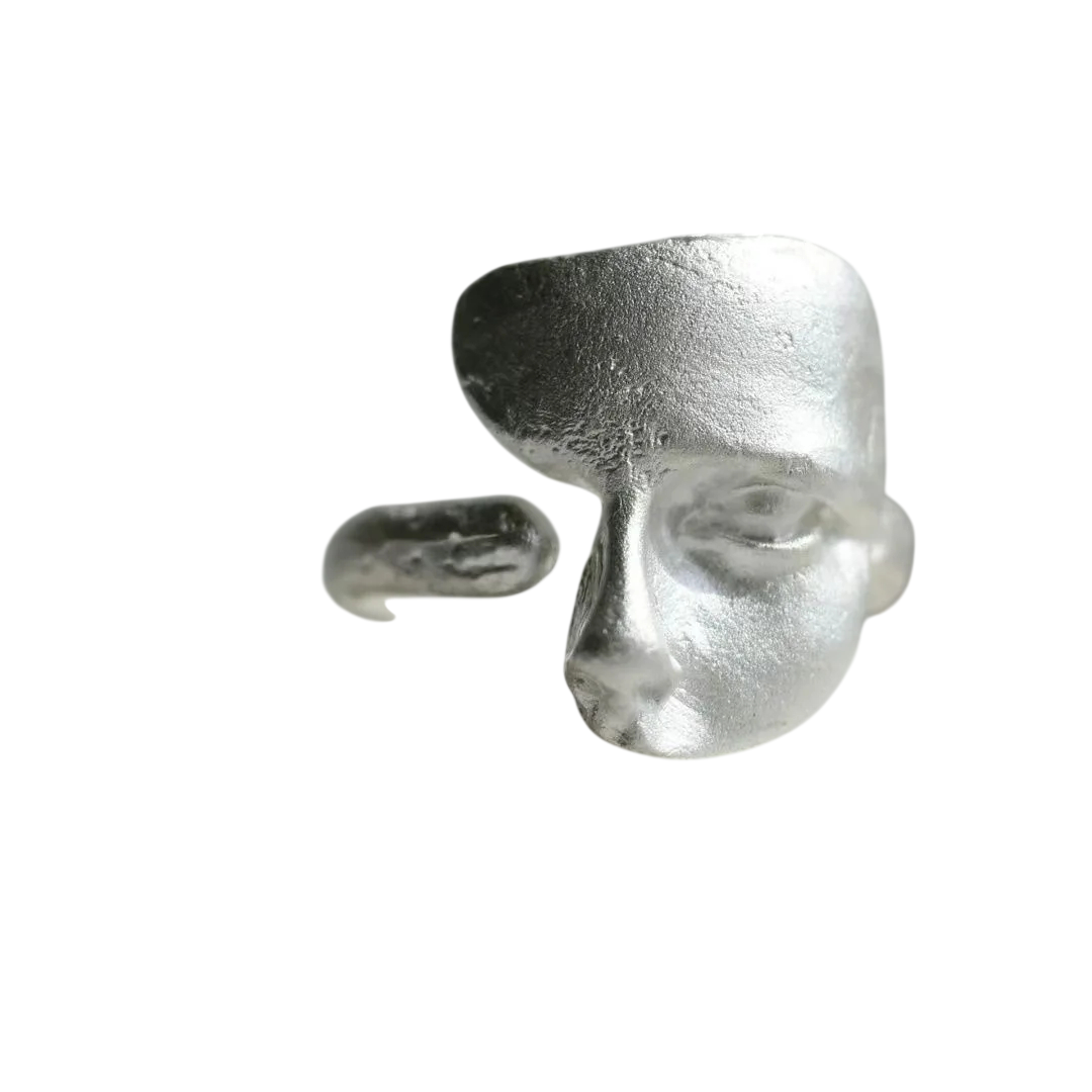 Questo elegante anello rappresenta un gioiello originale da donna, che colpisce per la sua realizzazione insolita e creativa. Il motivo plastico del volto umano conferisce all'accessorio un carattere unico e sottolinea lo stile personale di chi lo indossa. Grazie alla lavorazione curata, l'anello diventa non solo un accessorio di moda, ma anche un interessante elemento artistico. La lega di rame di alta qualità garantisce resistenza, durata e un comfort piacevole durante l'uso.