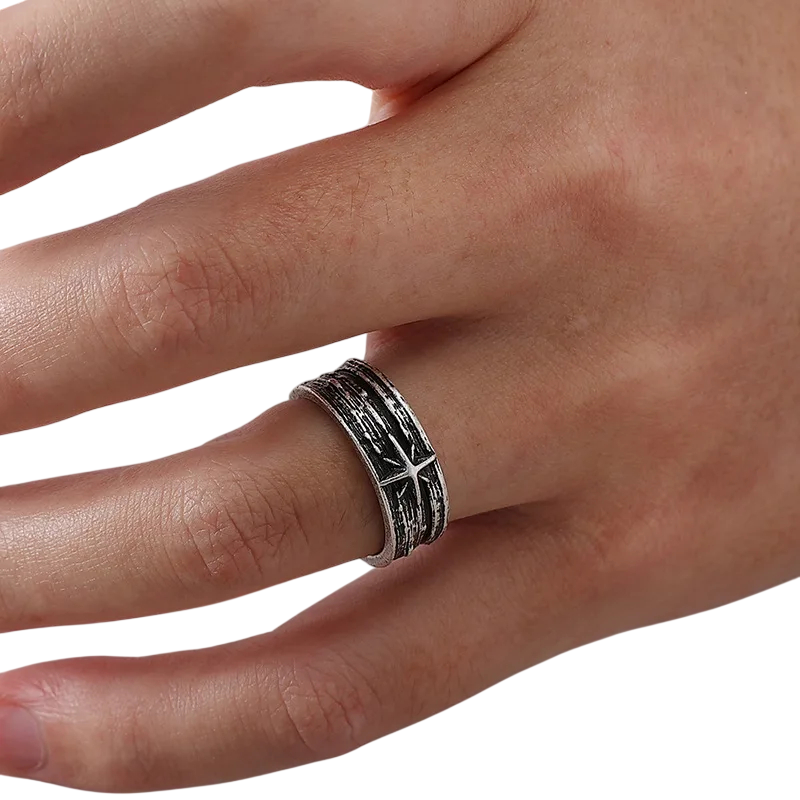 Elegante anello da uomo a forma di Notte Stellata, realizzato in lega di zinco di alta qualità. Design regolabile con anello aperto per un comfort ottimale. Descrizione completa