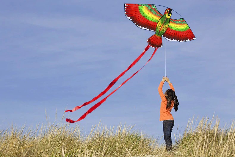 Questo meraviglioso aquilone a forma di pappagallo piacerà ai vostri bambini.
