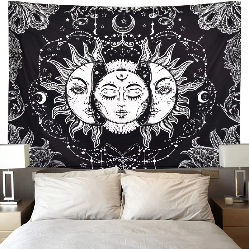 Arazzo bohémico elegante con motivi mistici di stelle e luna porterà nel vostro interno calma, armonia e un tocco di atmosfera magica. È la scelta ideale per decorare la camera da letto, il soggiorno, uno spazio meditativo o un angolo lettura. L'arazzo è realizzato in materiale di alta qualità, che è impermeabile e resistente allo sporco, il che facilita la manutenzione e prolunga la durata. Grazie alla leggerezza, può essere facilmente appeso a qualsiasi parete. Può essere lavato a mano o in lavatrice, senza perdere colori o qualità di stampa.