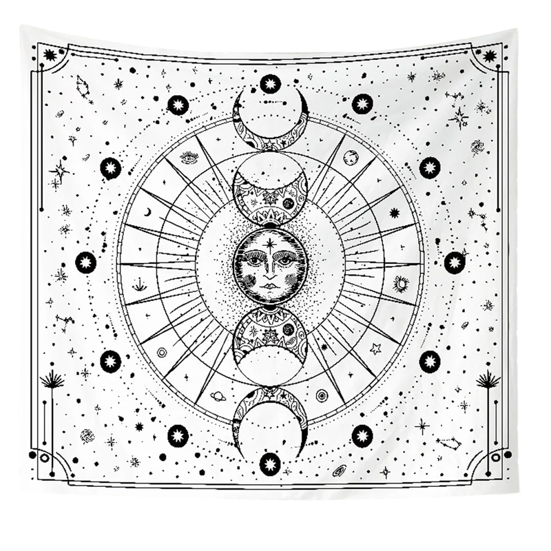 Grazie al suo design unico, l'arazzo diventa il punto focale di ogni spazio, attirando l'attenzione e creando al contempo un'atmosfera serena. È anche un'ottima idea regalo per gli amanti dell'astronomia, dello yoga o del design d'interni. Tessuto di alta qualità e stampa durevole garantiscono che anche dopo ripetuti lavaggi mantenga il suo aspetto. L'arazzo è versatile e facilmente combinabile con altri accessori in stile boho o minimalista. Crea a casa tua uno spazio per il relax, l'ispirazione e la connessione con l'universo.