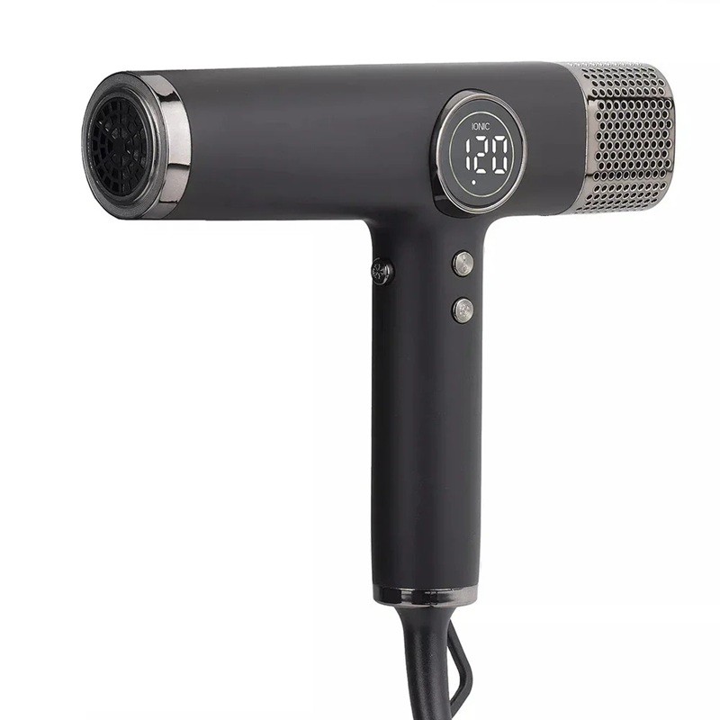 Asciugacapelli professionale 1600W con motore ad alta velocità 110000 RPM offre un forte e uniforme flusso d'aria, che riduce il tempo di asciugatura della metà. Grazie alla tecnologia ionica genera milioni di ioni negativi, che neutralizzano l'elettricità statica, prevengono l'effetto crespo e proteggono i capelli dall'eccessivo essiccamento. L'asciugacapelli è dotato di display LCD, che mostra le impostazioni attuali e consente una facile regolazione della temperatura e della velocità dell'aria. Quattro livelli di temperatura (aria fredda, 60 °C, 90 °C, 120 °C) e tre velocità garantiscono la massima flessibilità nella cura dei capelli. Gli accessori di styling magnetici consentono una rotazione a 360° e un facile adattamento dello styling. La forma a T e la struttura leggera garantiscono una presa confortevole anche durante un uso prolungato.