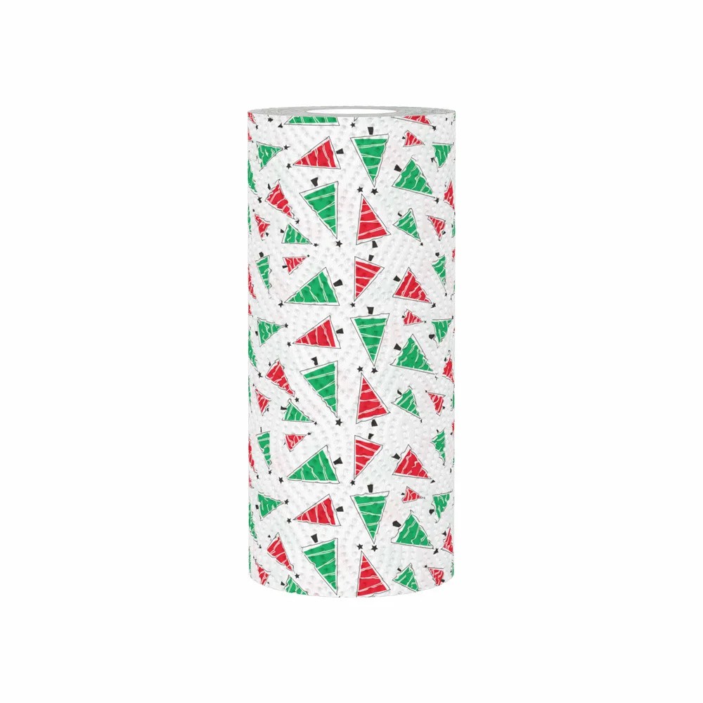 Asciugamani da cucina di carta natalizi 1 rotolo 48 fogli Asciugamani assorbenti e resistenti Motivo alberi di Natale Asciugamani decorativi per pulizie e tavole festive