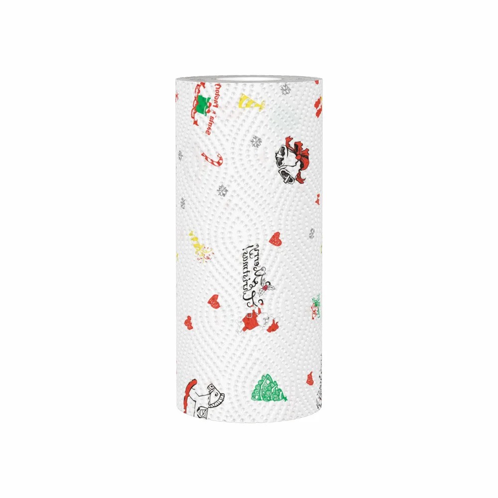 Asciugamani da cucina di carta natalizi 1 rotolo 48 fogli Asciugamani assorbenti resistenti Mix di motivi natalizi divertenti Babbo Natale albero campana