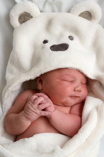 Il bambino sarà completamente avvolto nell'asciugamano e la testolina sarà coperta dal cappuccio, mantenendolo caldo.