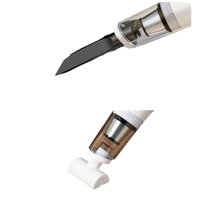 L'aspirapolvere è dotato di un filtro HEPA con setaccio in metallo, che cattura efficacemente anche le più piccole particelle di polvere, polline e allergeni. Il volume del serbatoio della polvere è di 0,5 litri, consentendo un utilizzo prolungato senza frequenti svuotamenti. La costruzione senza sacco facilita la manutenzione e garantisce una lunga durata del dispositivo. Il set 1–3 bocchette intercambiabili offre un utilizzo universale – dalla pulizia degli interni dell'auto alla rimozione della polvere da tastiere, mobili o angoli.