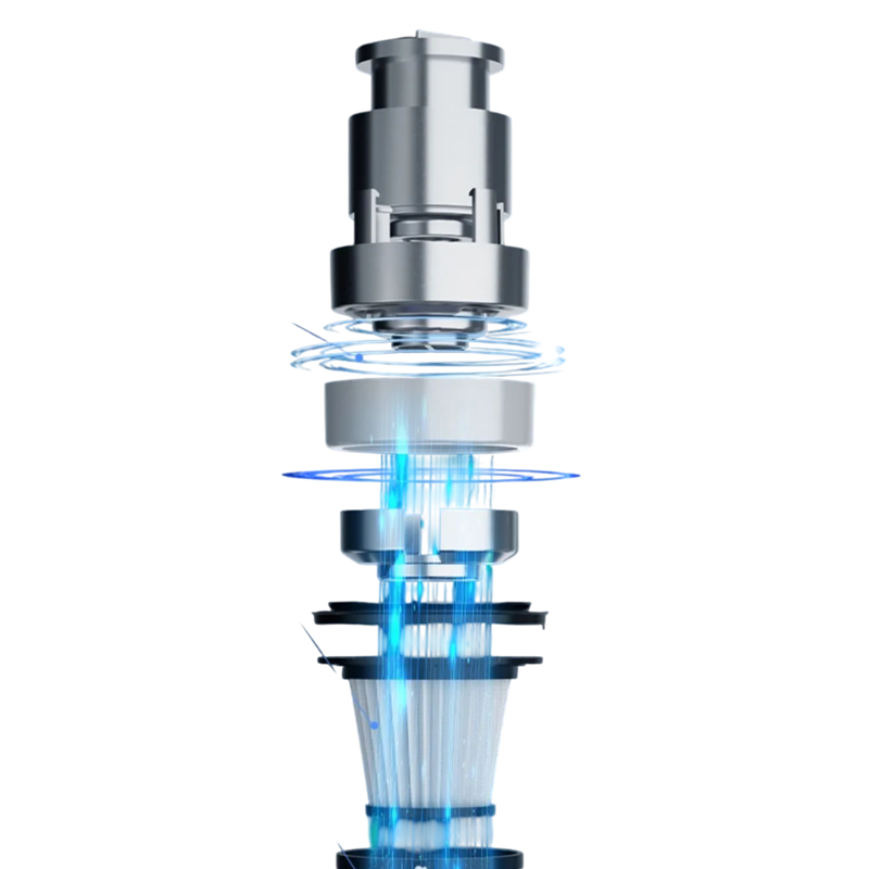 - Filtro HEPA con setaccio in metallo – cattura il 99,97% delle micro-particelle, facilmente lavabile