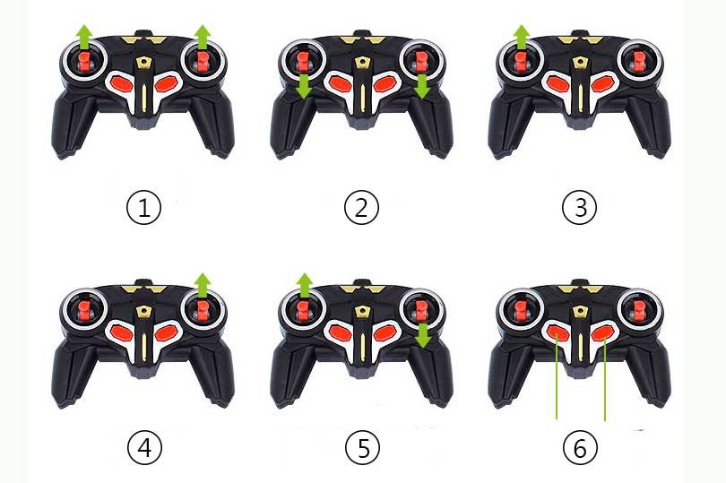 Caratteristiche del telecomando: 1. l'auto va avanti, 2. indietro, 3. a destra, 4. a sinistra, 5. gira, 6. trasformazione in robot