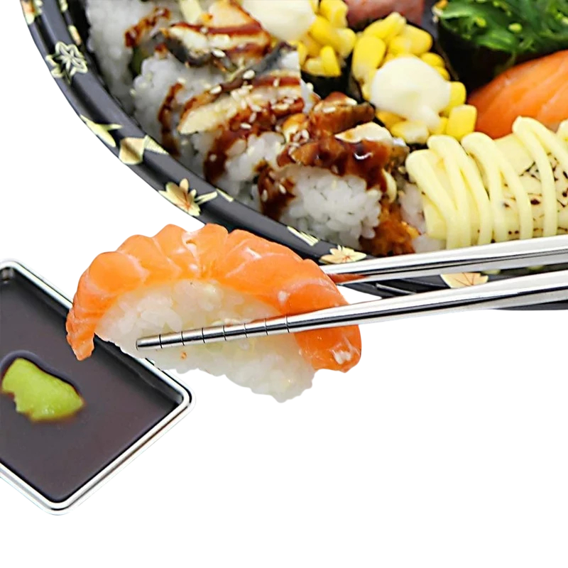 Il set include 2 paia di bacchette in metallo, quindi è ideale per condividere i pasti con due persone. Il design minimalista in metallo appare moderno e si adatta a qualsiasi cucina o sala da pranzo. Queste bacchette possono essere utilizzate non solo per consumare sushi, ma anche per preparare o servire piatti asiatici.