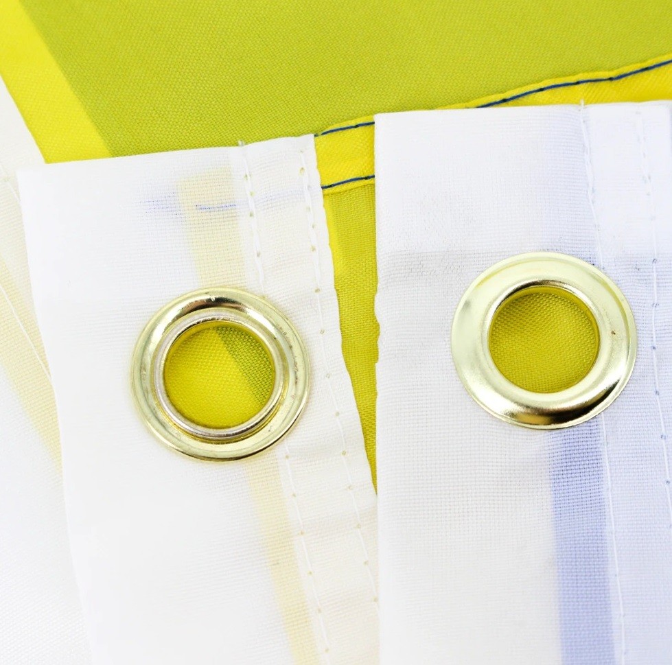 Bandiera ucraina realizzata in materiale di alta qualità. Alta saturazione dei colori. Ottima per sfilate e come decorazione. Negli angoli ci sono occhielli metallici. Permette di essere appesa a un pennone o alla finestra.