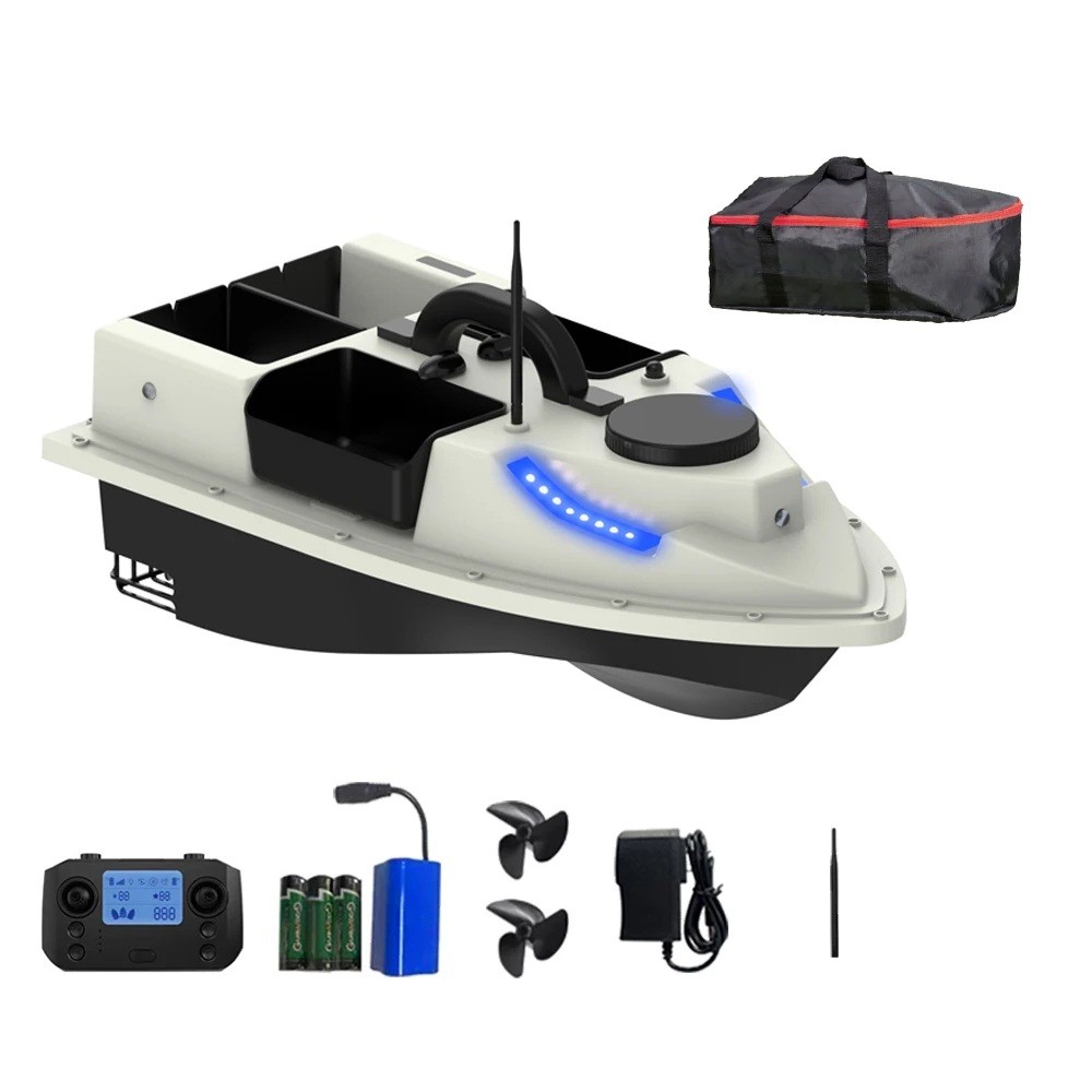 Barca da pesca GPS 54 x 27 x 21 cm Capacità 2 kg 600 m di controllo remoto Luci LED Barca a più compartimenti