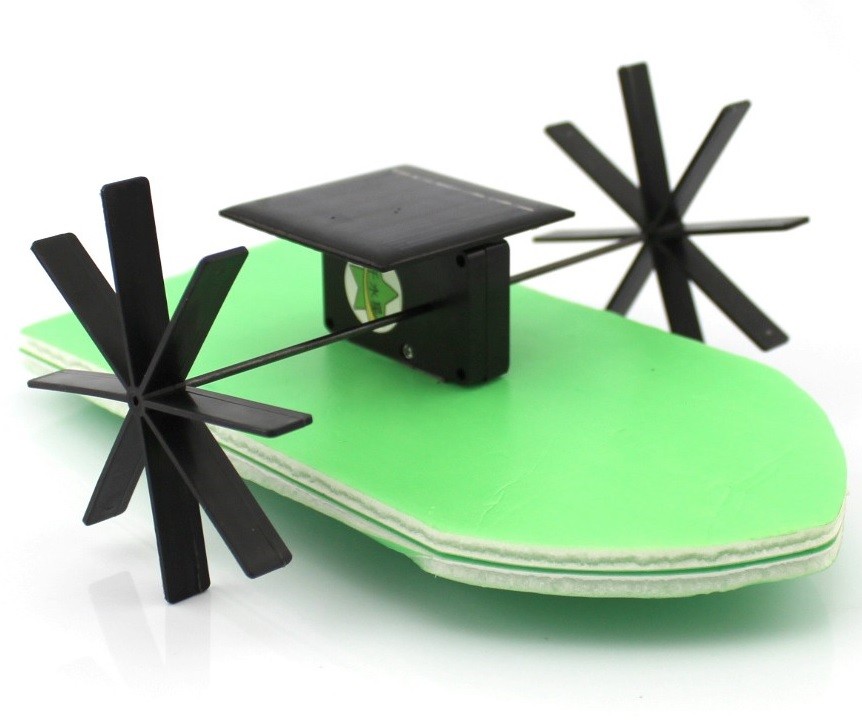 Il corpo della barca è in pannello di schiuma, che è alimentato da un pannello solare.