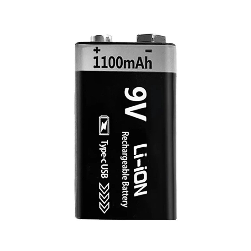 1× batteria ricaricabile 9V 1100mAh con connettore USB-C