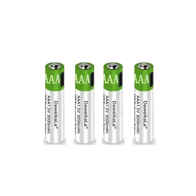 Batterie ricaricabili USB AAA 1,5V 3000mAh Li-ion 12pz con cavo USB-C per giocattoli, mouse, telecomandi, lunga durata, ricarica rapida, riutilizzabili