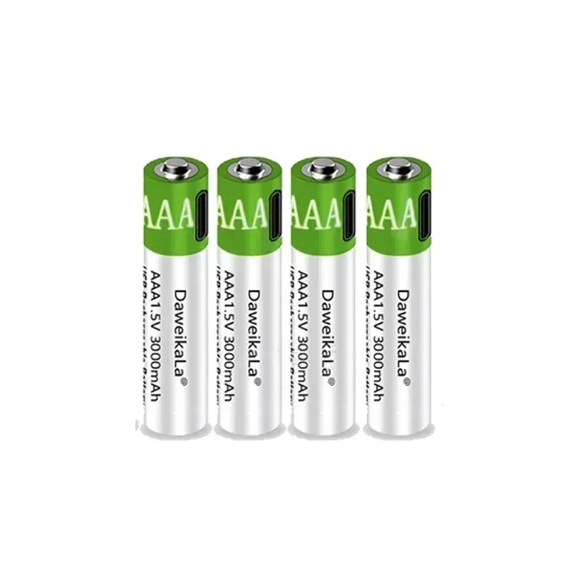 Batterie ricaricabili USB AAA 1,5V 3000mAh Li-ion 4pz con cavo tipo C per Mouse Giocattoli Telecomandi Alta Capacità Ricaricabili
