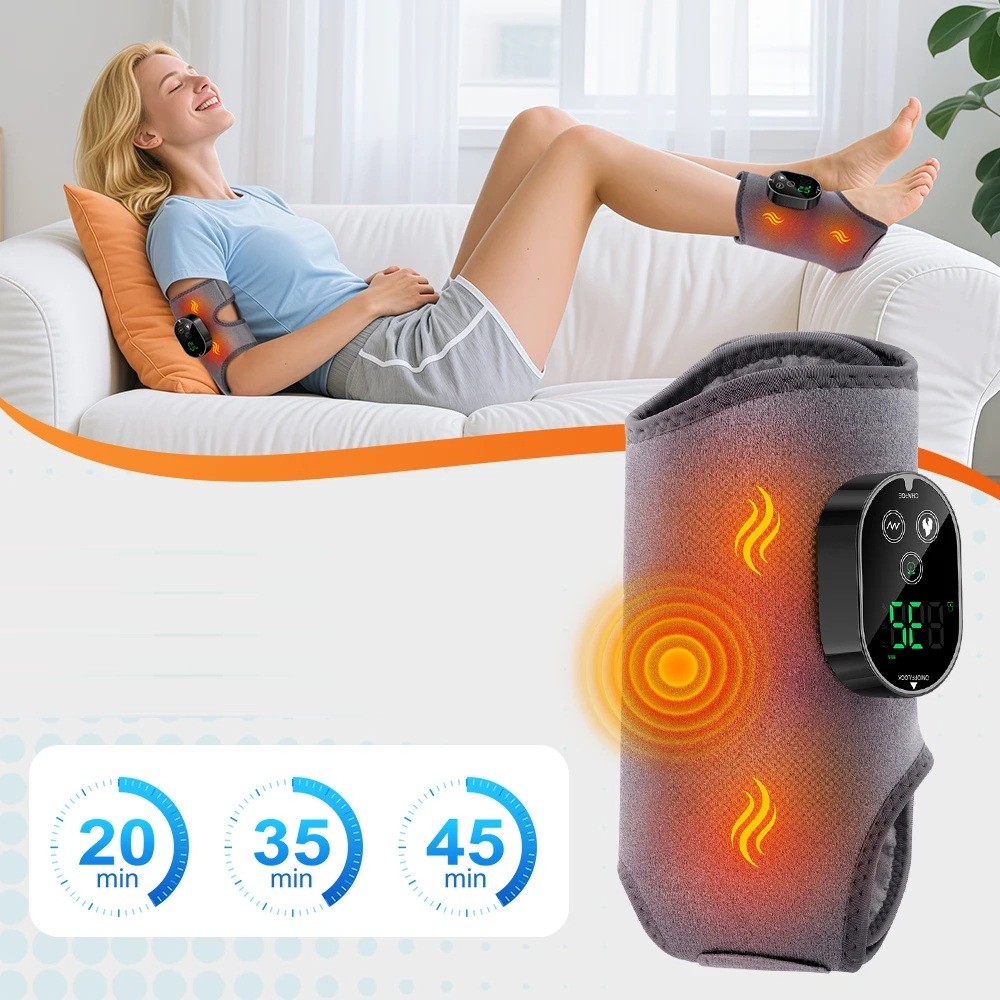 Per un uso sicuro e confortevole, il bendaggio è dotato di un timer intelligente con tre lunghezze preimpostate: 20, 35 e 45 minuti. Basta selezionare il tempo desiderato e il dispositivo si spegne automaticamente al termine, evitando surriscaldamenti o utilizzi prolungati non necessari. Questa modalità è ideale per il relax serale davanti alla televisione o per il riposo dopo il lavoro.