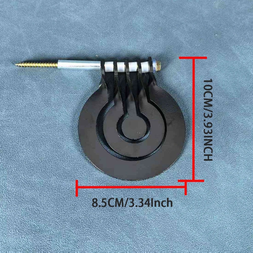 Bersaglio metallico pendolare resistente progettato per l'allenamento al tiro, facile da fissare a un albero, tre cerchi di mira e dimensioni compatte per un tiro preciso. Descrizione completa