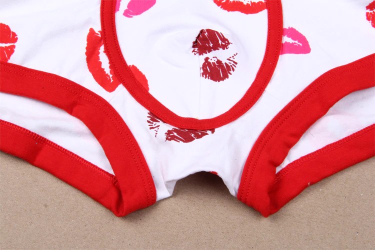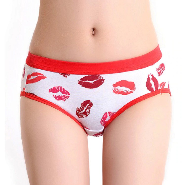 La biancheria intima è realizzata in cotone di alta qualità e presenta una stampa di labbra.
