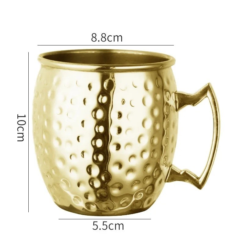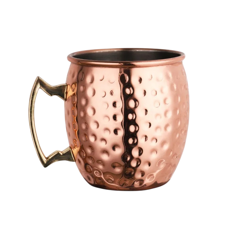 Bicchiere di rame da 530 ml con superficie martellata e dimensioni 8,8 × 10 × 8,8 cm. Adatto per servire bevande a casa e in diverse occasioni. Descrizione completa