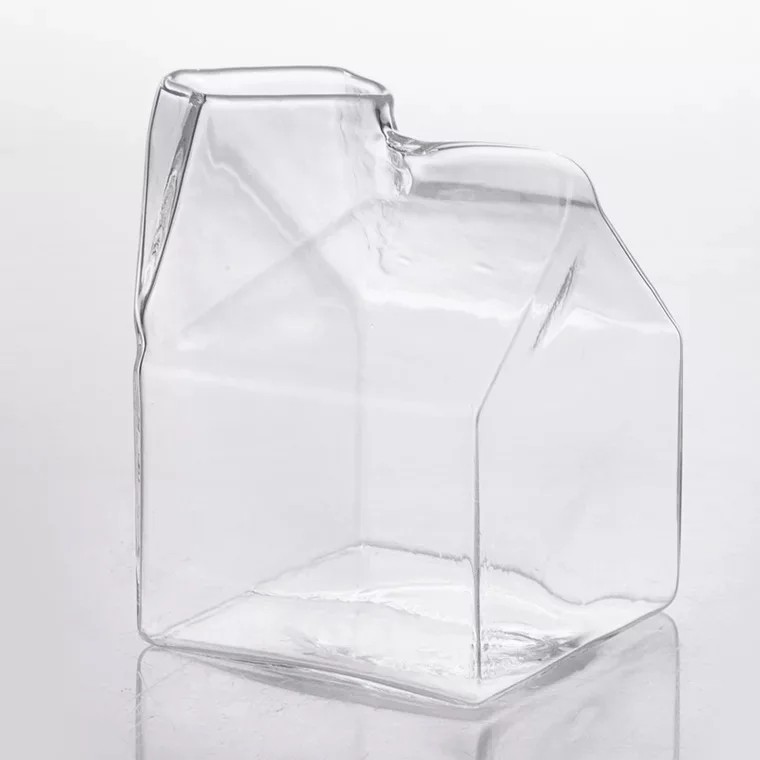 La forma ispirata al cartone del latte crea un elemento decorativo che può ravvivare la tavola durante la colazione, i pasti in famiglia o il servizio di bevande in diverse occasioni. Il vetro trasparente consente anche di vedere chiaramente il contenuto del bicchiere.