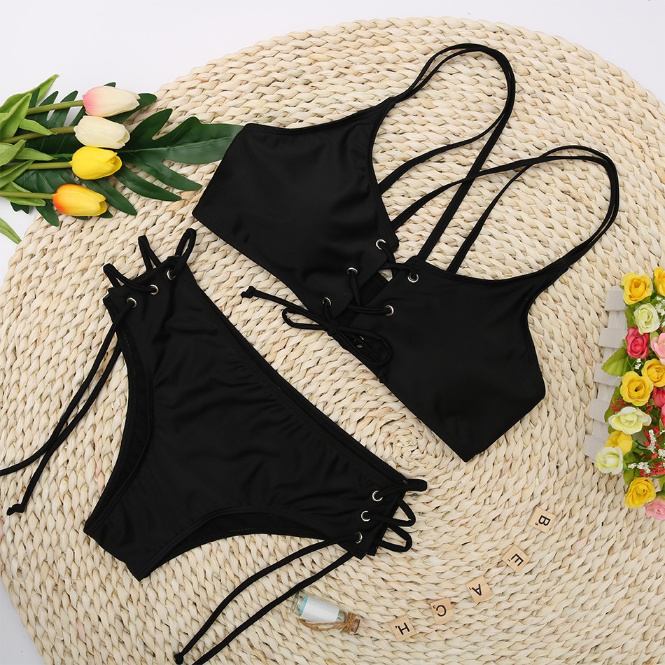Questi bikini, sebbene siano monocolore, sono interessanti grazie al reggiseno che è lacciato, il che conferisce ai bikini un aspetto eccezionale e attraente.
