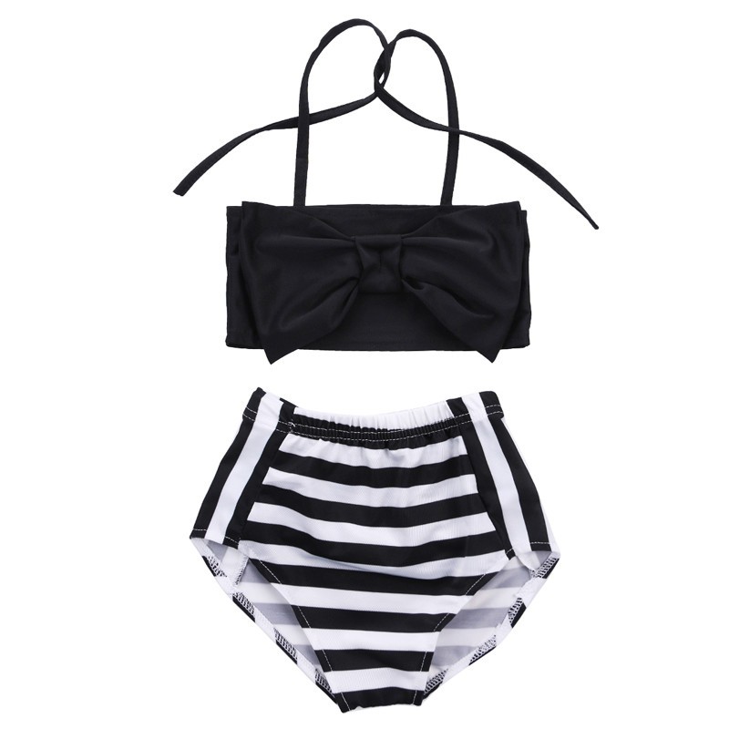 Bikini moderni da ragazza con fiocco - Nero e bianco