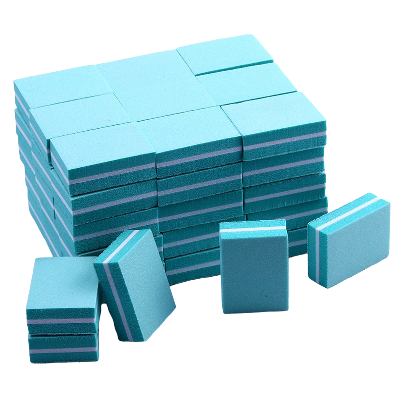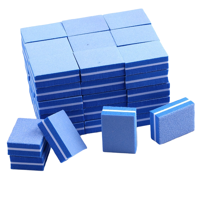 Dimensioni 3,6 x 2,5 x 1,2 cm con grana 100/180. Adatto per tutte le tecniche di unghie. Descrizione completa