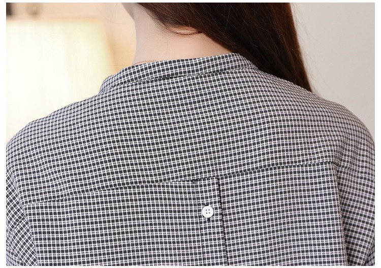 Bellissima blusa con fiocco nero e motivo a quadri.
