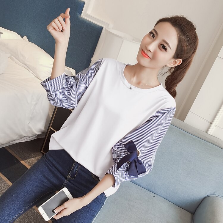 Blusa da donna con maniche a righe