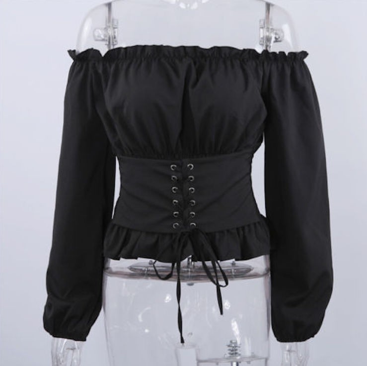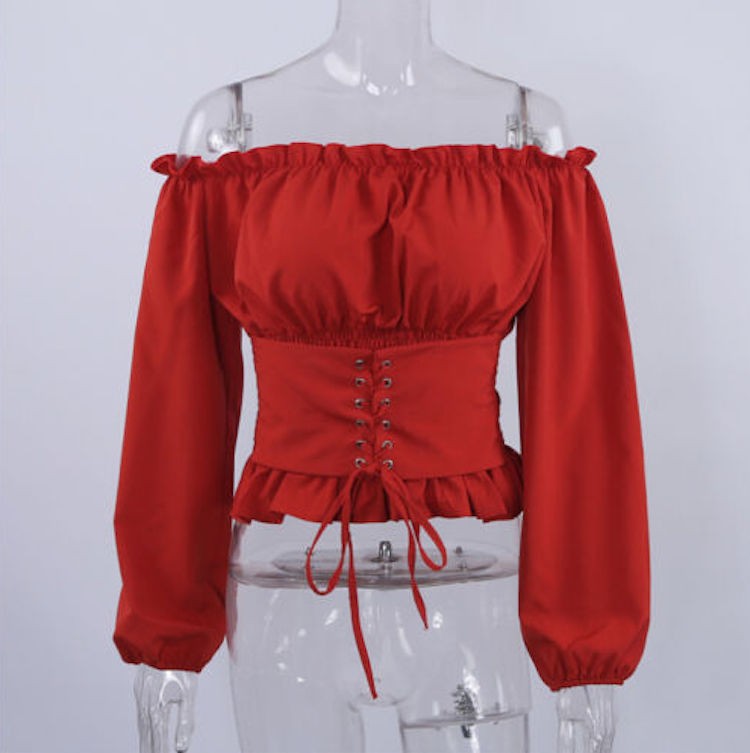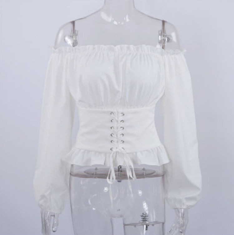Blusa senza spalline che appare molto elegante.