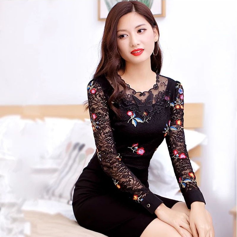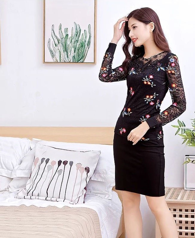 Ha maniche lunghe in pizzo. Materiale piacevole.