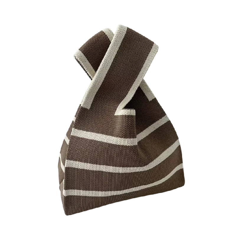 Borsa a maglia da donna con motivo a righe 20x35 cm poliestere fodera in cotone borsa a mano per uso quotidiano