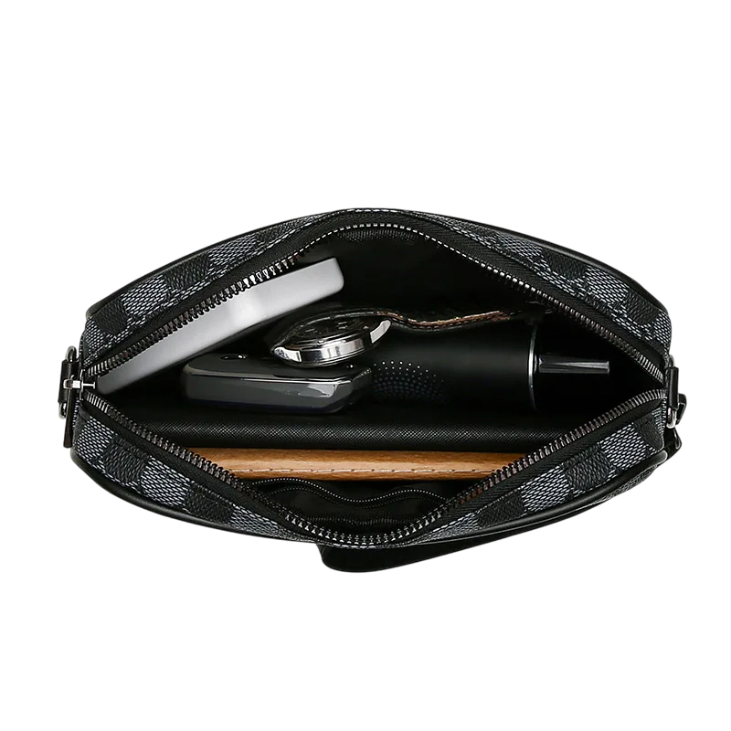 Elegante borsa a tracolla per uomini in pelle sintetica con motivo moderno, ideale per telefono, documenti e altre necessità durante i viaggi e al lavoro. Descrizione completa