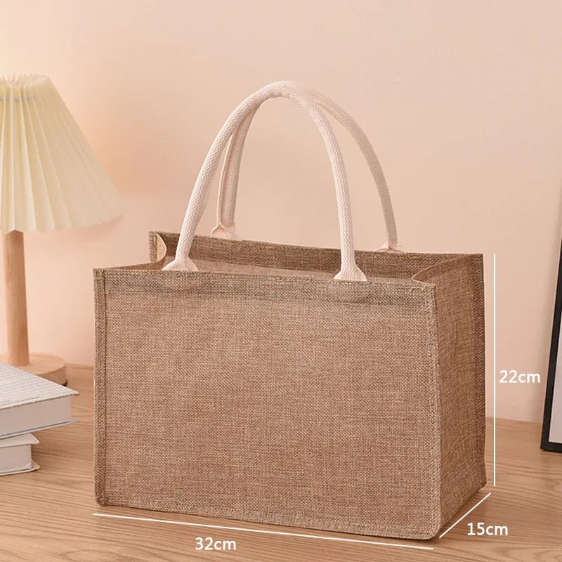 Borsa da shopping 32 x 22 x 15 cm Borsa in poliestere con aspetto in juta Manici in cotone Piccola borsa a mano per regali e acquisti