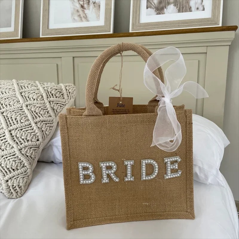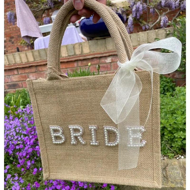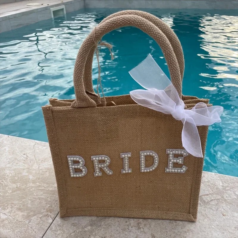 Borsa da Spiaggia Bride 30 x 30 x 10 cm Aspetto Naturale Borsa Regalo per Sposa Addio al Nubilato