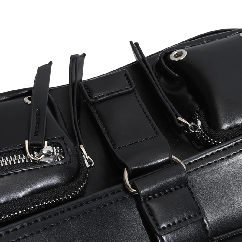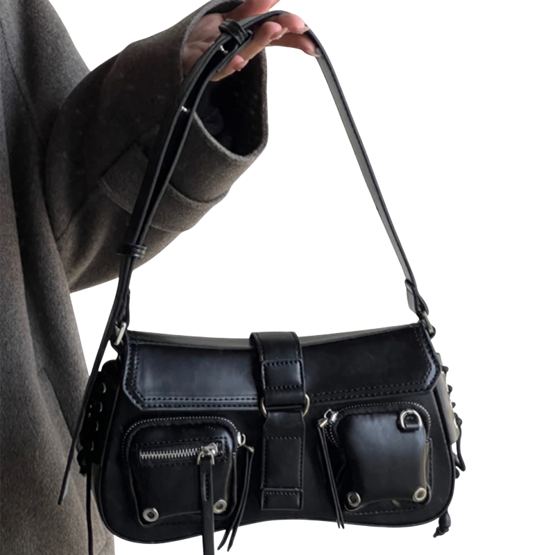 Elegante borsa in stile goth con un aspetto scuro, dimensioni compatte e un'organizzazione pratica per l'uso quotidiano. Descrizione completa