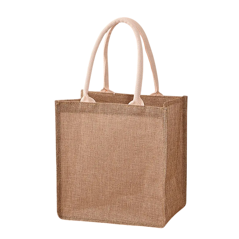 Borsa per la spesa 24 x 24 x 15 cm Borsa in poliestere con aspetto juta Manici in cotone Piccola borsa rigida per piccoli oggetti e regali