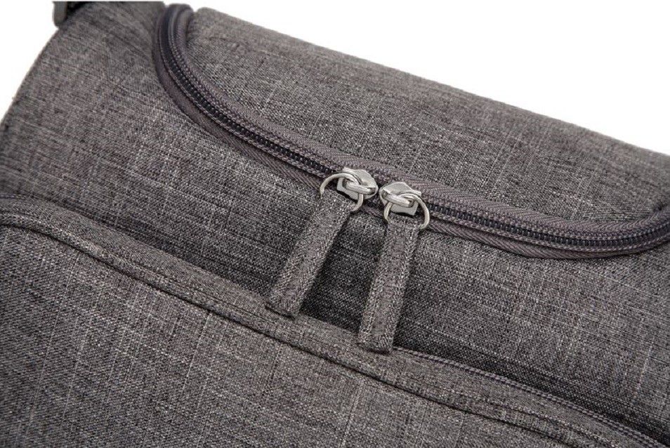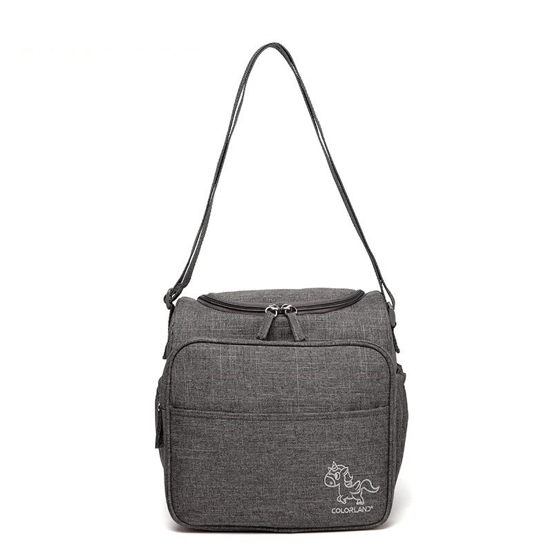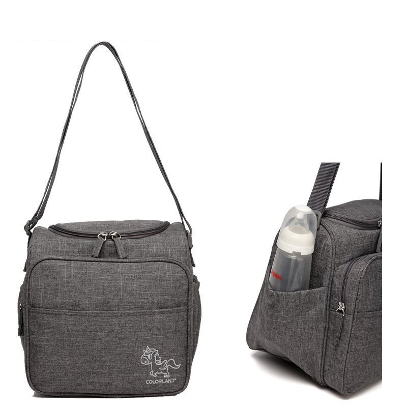 Borsa per pannolini e altri accessori per bambini con tracolla regolabile.