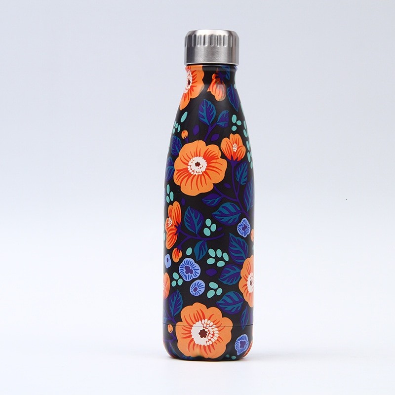 Bottiglia da viaggio in acciaio inox con motivo floreale