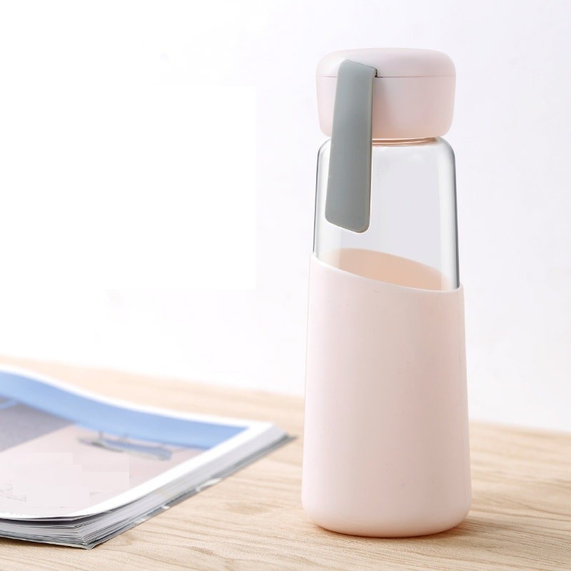 La bottiglia ha un corpo in vetro e una copertura in silicone, che la rende facile da impugnare.