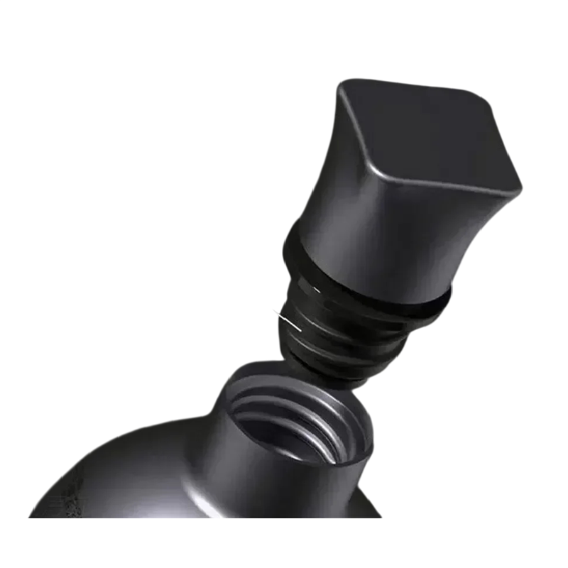 La forma della bottiglia è progettata per una presa comoda e funge anche da accessorio interessante. La superficie con decorazione 3D è visivamente accattivante e distingue la bottiglia termica dai modelli comuni. La finitura nera appare universale e si adatta a diverse situazioni. Il pratico tappo a stantuffo consente una facile chiusura.
