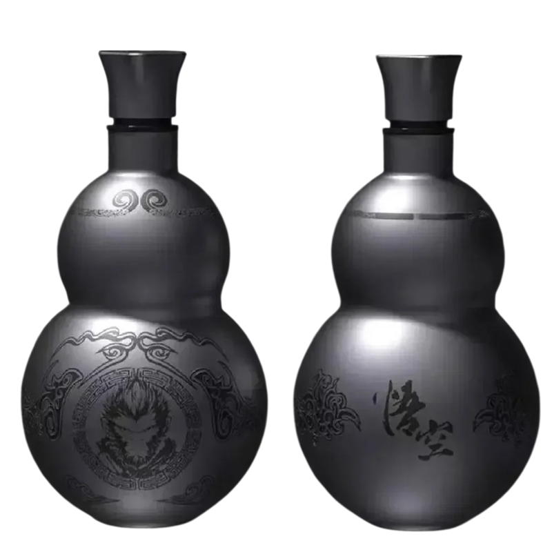 Bottiglia termica Isolata Wukong a forma di zucca 500 ml acciaio inossidabile nera design 3D bottiglia con tappo a stantuffo per bevande