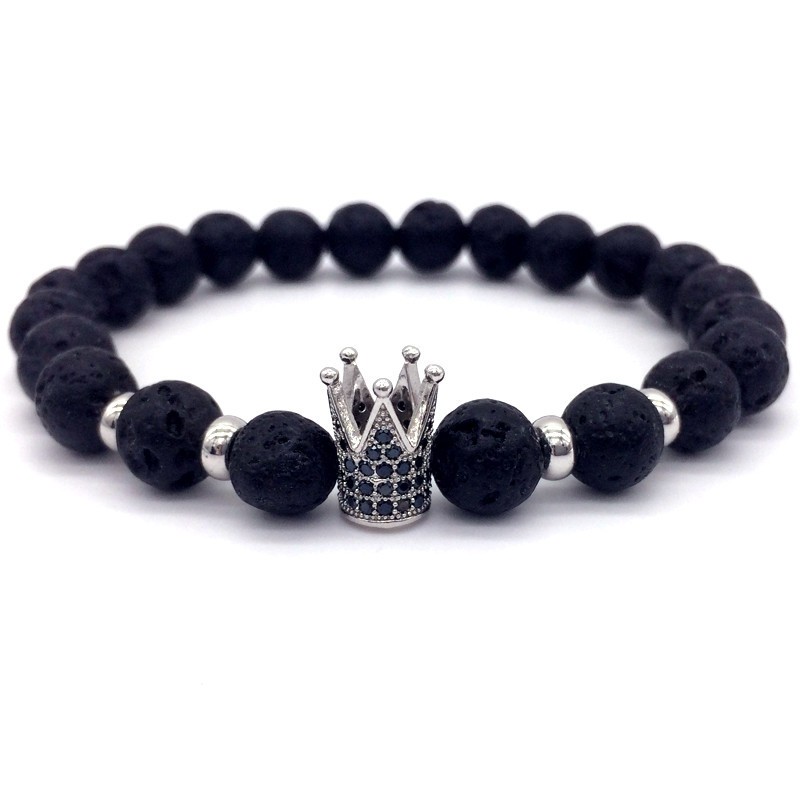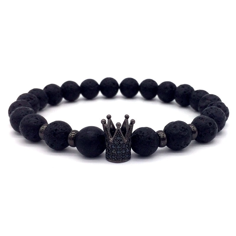 Bracciale alla moda con pietre laviche decorato con una corona reale è il regalo ideale per ogni donna e uomo.