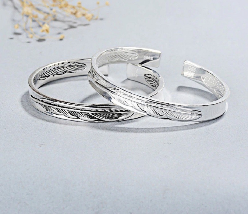 Bracciale aperto da donna piuma
