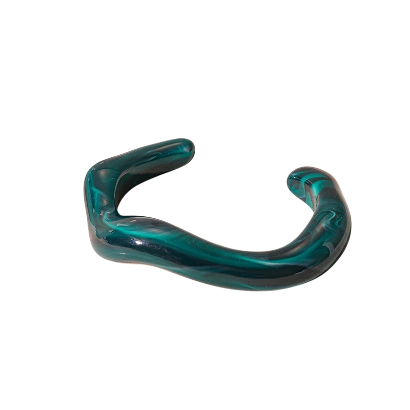 Elegante bracciale da donna in acrilico con forma irregolare e design aperto. Larghezza 6 cm, spessore 1,15 cm per un aspetto audace e moderno. Descrizione completa
