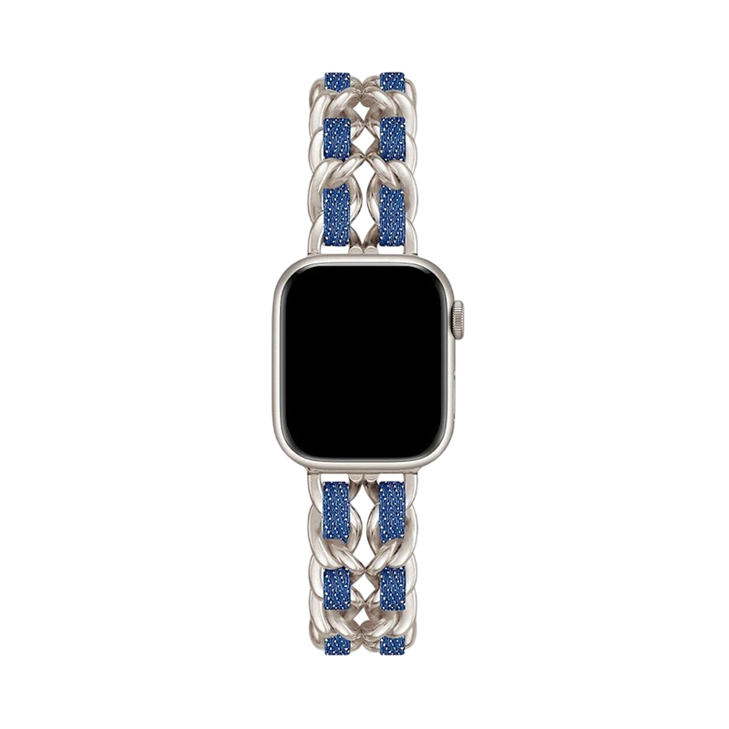 Bracciale in metallo stiloso per donna di colore blu denim, progettato per Apple Watch Series 10–11 nella misura 42 mm. Aspetto elegante, indossabilità confortevole e qualità nella realizzazione. Descrizione completa