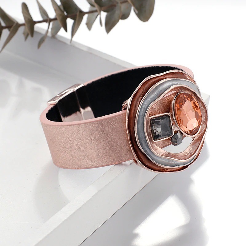 Materiale: metallo per bigiotteria, pelle artificiale, cristallo