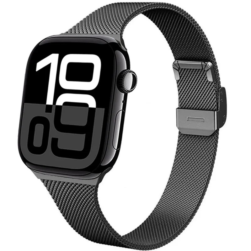 Bracciale milanese in metallo con fibbia rigida per il fissaggio e la chiusura sicura. Destinato per Apple Watch Series 10 e 11 nella misura di 42 mm, comodo, elegante e resistente. Descrizione completa