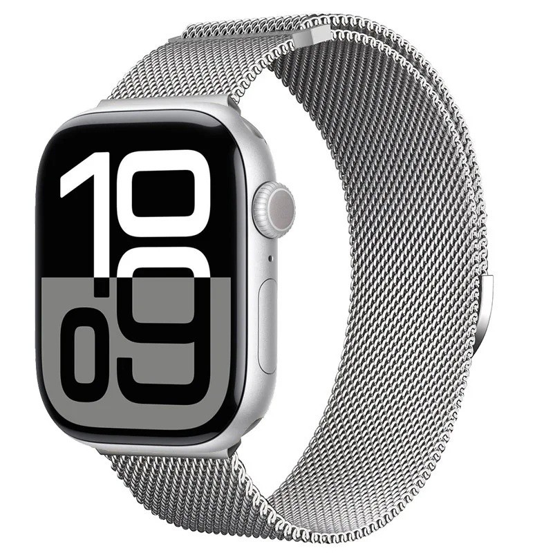 Bracciale in metallo Milanese elegante con chiusura magnetica e regolazione continua della lunghezza. Destinato per Apple Watch Series 10 e 11 nella misura di 46 mm, comodo ed elegante. Descrizione completa